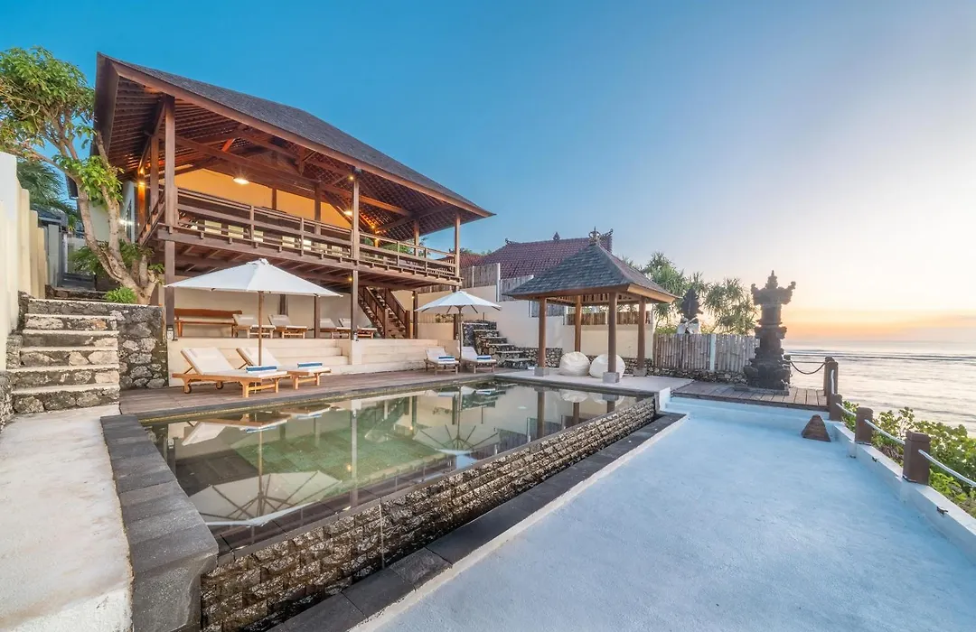 Die 2-Zimmer- Villa Cemara Ceningan Nusa Lembongan mit Blick aufs Meer liegt am Strand von Nusa Lembongan und bietet einen Swimmingpool, in dem sich Gäste entspannen können.